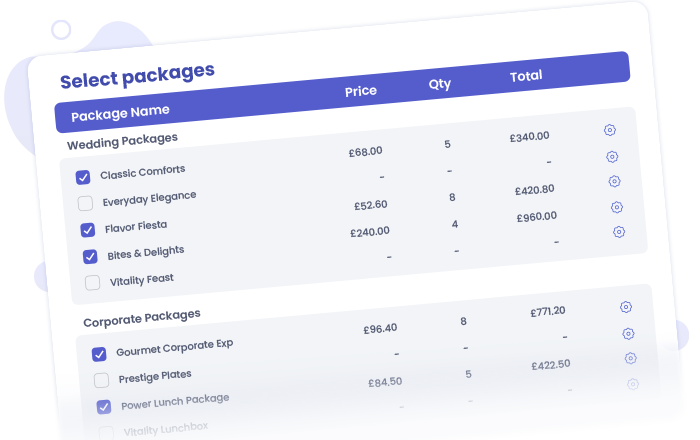 Create ready-made bundles for popular event types. Packages can include food, drinks, services, and hire items - giving customers a simple, all-inclusive option.
